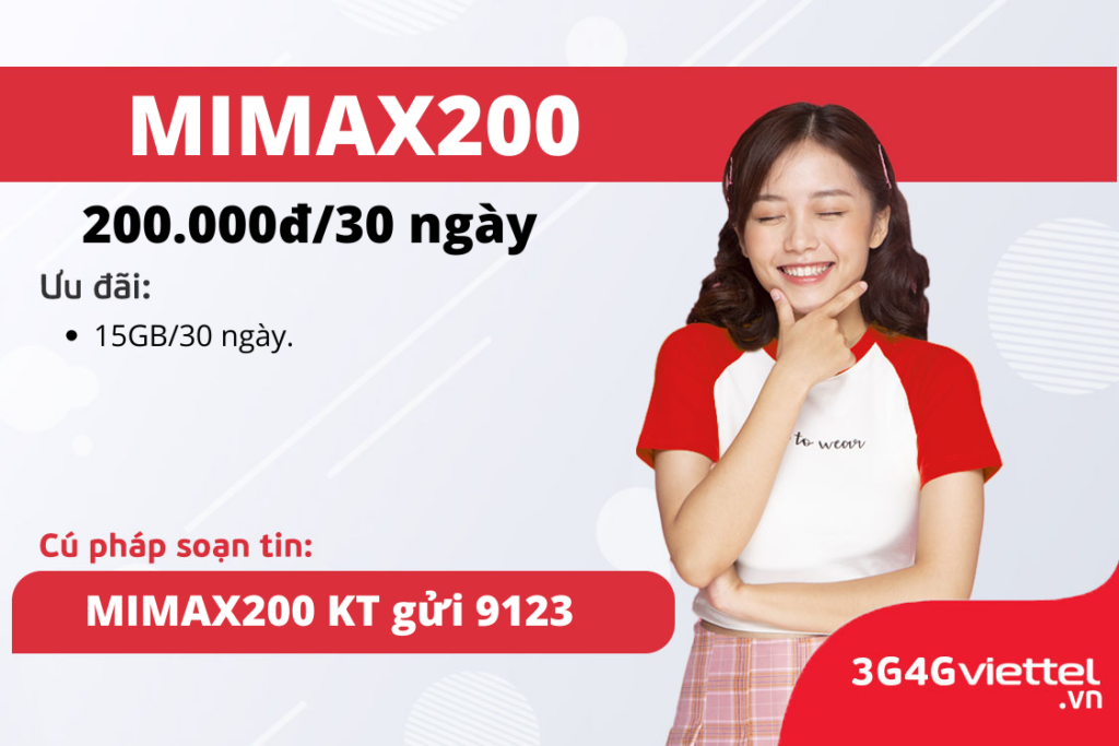 MIMAX200 Viettel là gói cước 4G Viettel đáp ứng nhu cầu cho những khách hàng có nhu cầu sử dụng Data nhiều. Khi đăng ký MIMAX200 chỉ với 200.000đ quý khách sẽ nhận ngay 15GB DATA tốc độ sử dụng trong 30 ngày. Hết tốc độ cao vẫn truy cập Internet bình thường (KHÔNG PHÁT SINH THÊM CƯỚC). Bạn không […]
